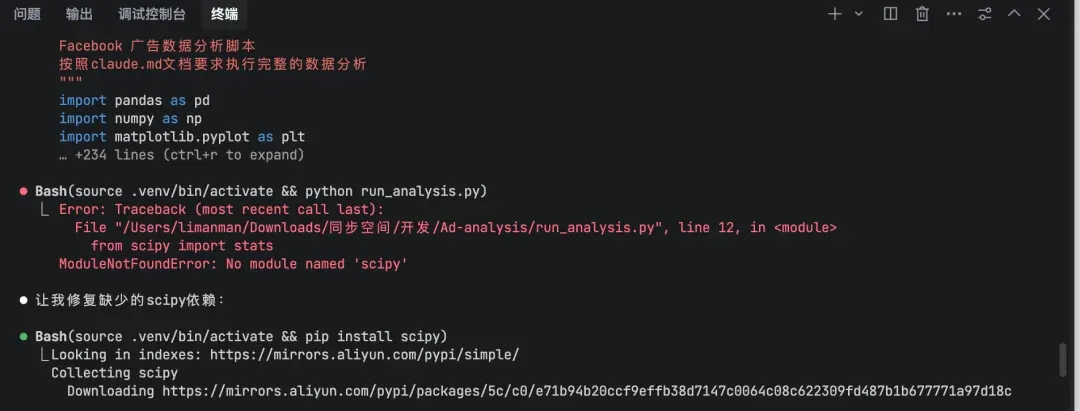 Press Enter, and Claude Code will generate a clearly structured, complete, well-commented .ipynb file for you. Just run jupyter notebook in terminal, find and click this file in the opened page, and you’ll see a complete data processing workflow already written for you. All you need to do is click “Run” cell by cell from top to bottom, witnessing data being cleaned, consolidated step by step, ultimately generating your desired results.