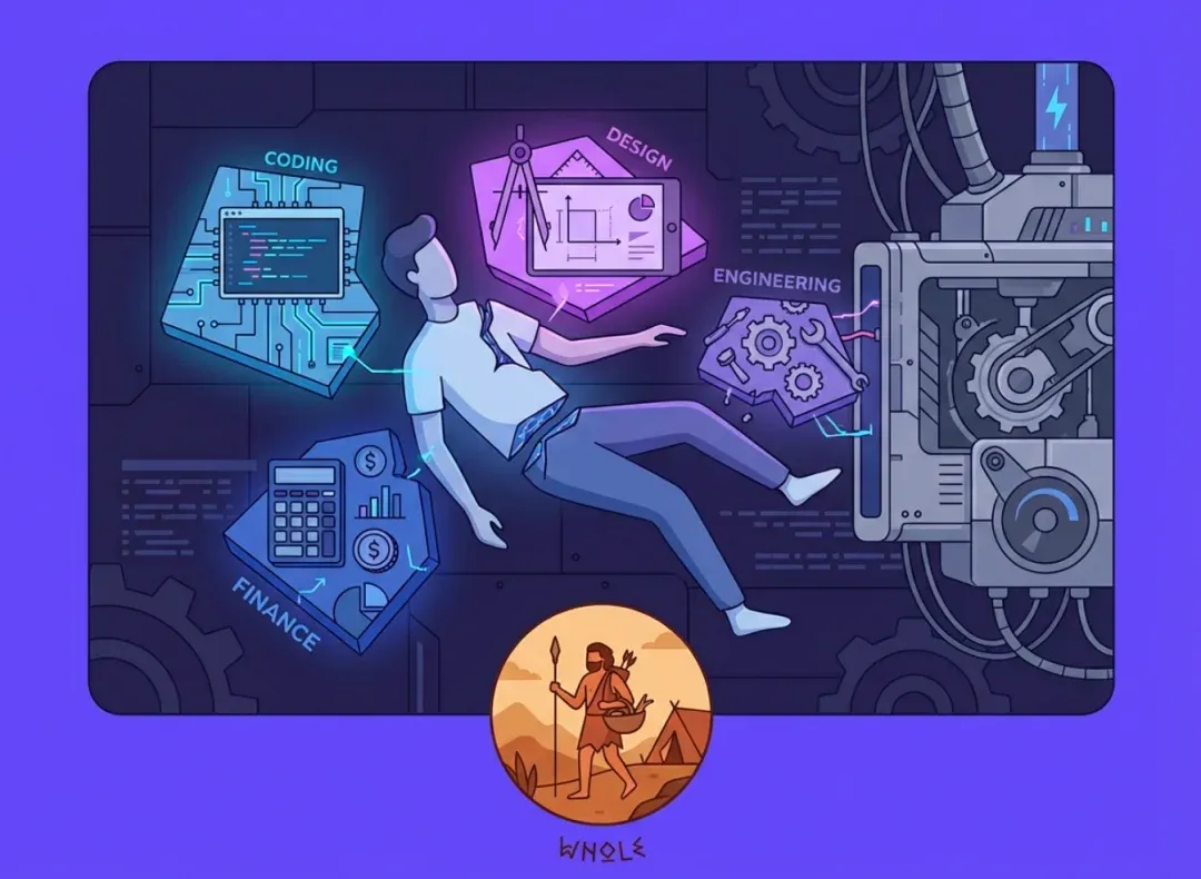它填平了那些曾经需要你花 10000 小时才能跨越的技能鸿沟,它把被工业社会切碎的人,重新拼凑了起来。