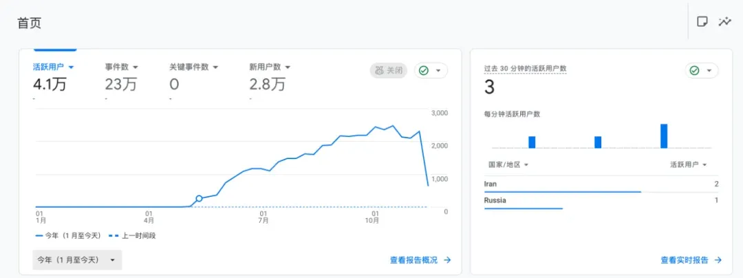 从数据能看到,总活跃用户 4.1 万,自然搜索(Organic Search)贡献了 1.8 万会话,是绝对的流量主力。该项目已经实现了基本的 PMF,并且已经收回了老本,开始有相对不错的盈利(其实产品的数据链路都没怎么做埋点,就是捞一单是一单)。