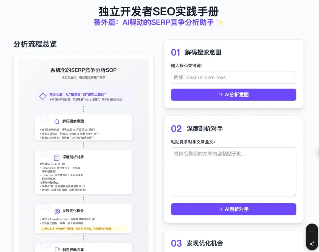 在最初的惊喜过后,我以一个独立开发者和产品经理的视角,完整地体验了这个AI生成的“SERP分析助手”。我必须说,结果远超一个“有趣的玩具”。
