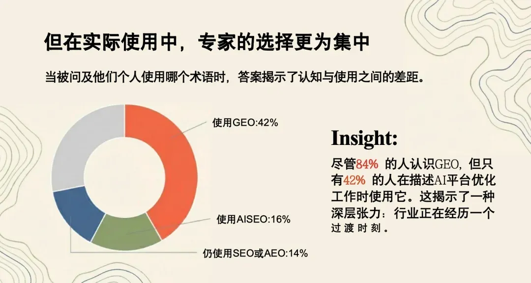 Fractl × Search Engine Land 的联合调研显示:消费者侧 82% 认为 AI 搜索更有帮助,行为习惯已不可逆;从业者侧出现大量术语“包装”,以掩饰现实压力。
