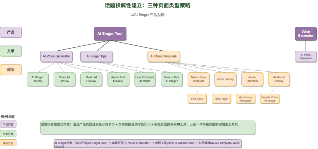 关键提示: 无论采用哪种结构,链接的锚文本(Anchor Text)都至关重要。不要用“点击这里”这种无意义的词。要使用能清晰描述目标页面内容的、富含关键词的锚文本,例如用“AI灵魂乐歌手模板”作为链接文字,指向对应的模板页。