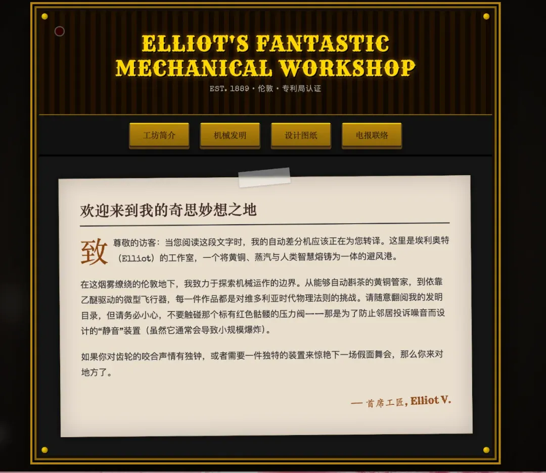 考察 AI 对复杂纹理和机械结构的 CSS 模拟能力。蒸汽朋克涉及大量金属质感、齿轮和烟雾效果。