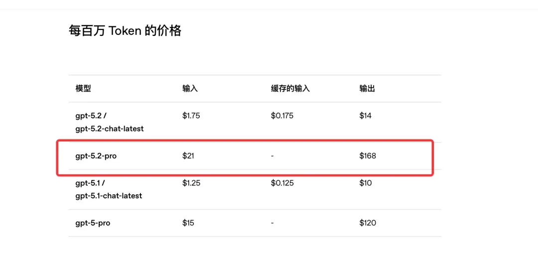 OpenAI 这次虽然被 Google Gemini 3 逼急了,但在定价上却异常自信(甚至可以说是傲慢)。 GPT-5.2 的输出价格飙升到了 $14 / 1M tokens。这意味着什么?更遑论更加离谱的GPT5.2 Pro 的 168 美元/1m tokens天价!