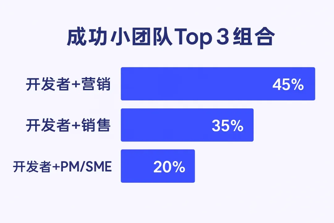 MicroConf数据显示**「Dev + Marketer/PM」为成长最快组合**;单打独斗固然浪漫,但“兄弟同心,其利断金”的古训在创业圈依然适用。
