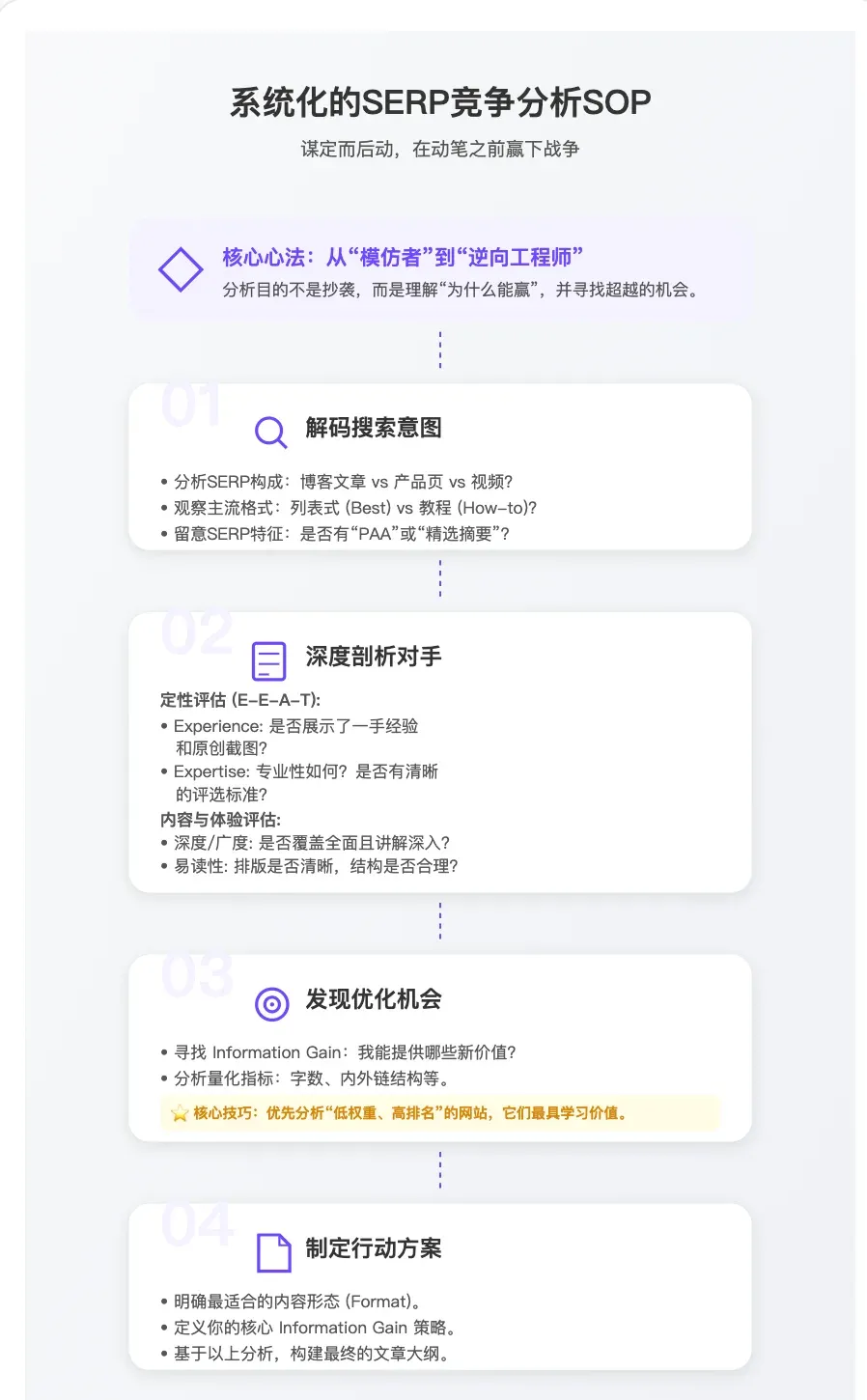 这篇番外篇,旨在为你提供一套系统化的“品尝”方法论。我们将学习如何科学地分析SERP,从模仿者心态,转变为超越者心态。掌握这套SOP,你将学会在动笔之前,就为你的文章预设胜利的轨道。
