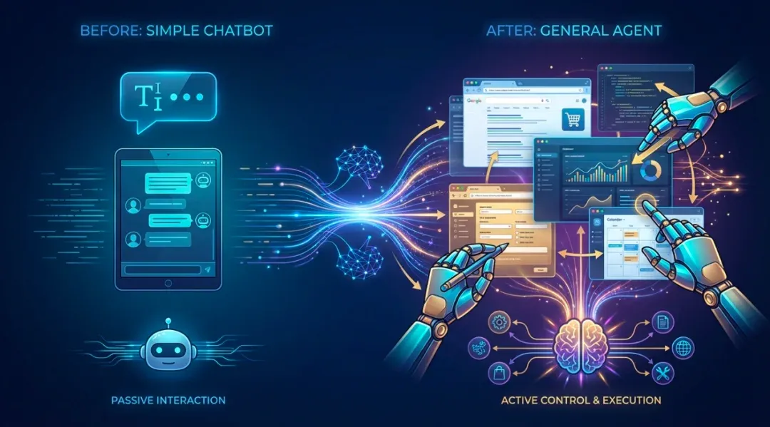 在行业普遍聚焦于 Chatbot(对话机器人)或 Copilot(辅助驾驶)时,Manus 选择了难度更大、商业化路径更不确定的 General Agent(通用代理)。